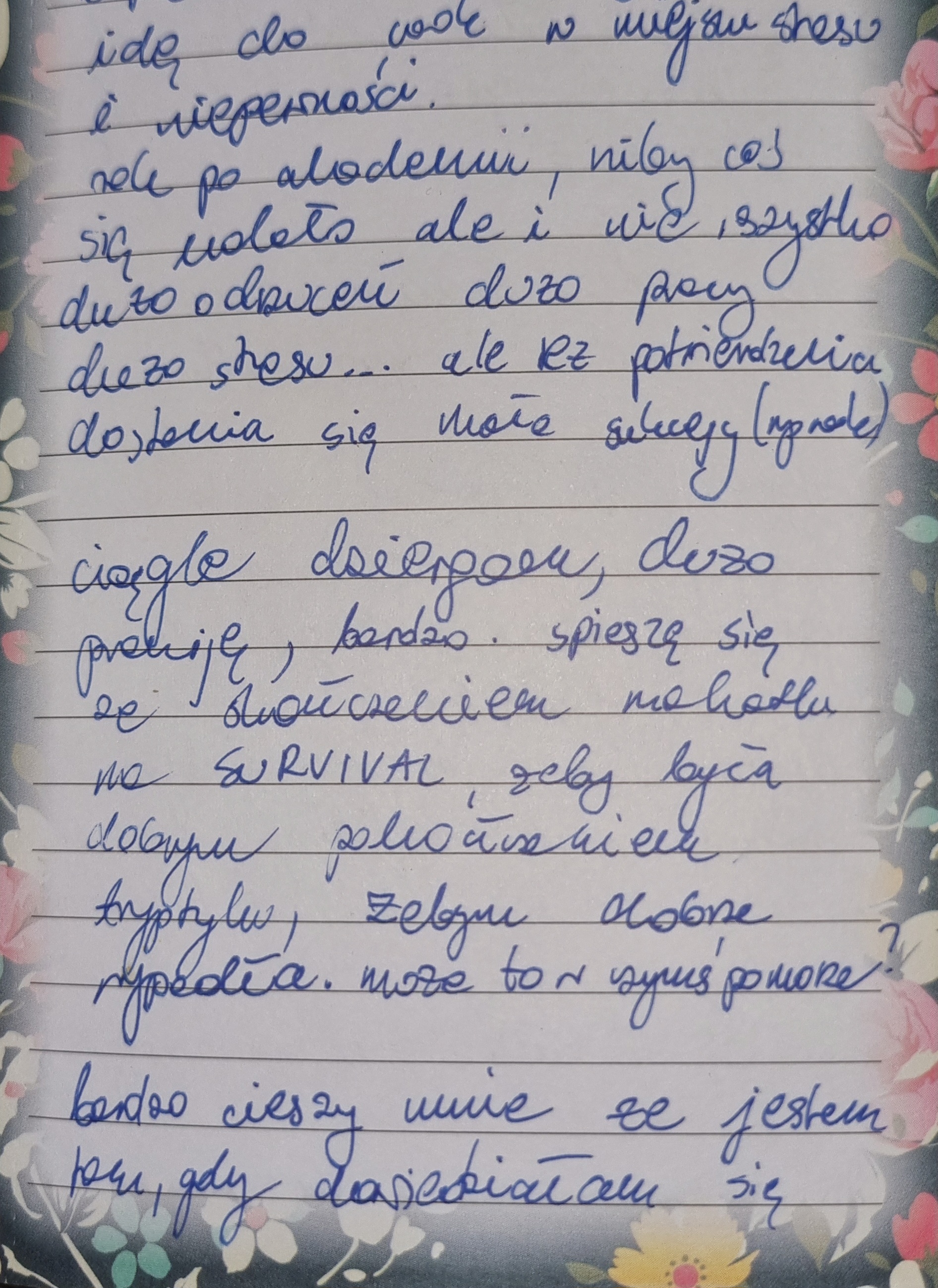 Equally important to me is learning how to maintain balance and mental health amidst all this, so as not to burn out from the enormous amount of sadness and problems I deal with. I would need support with this, both practical and perhaps psychological.