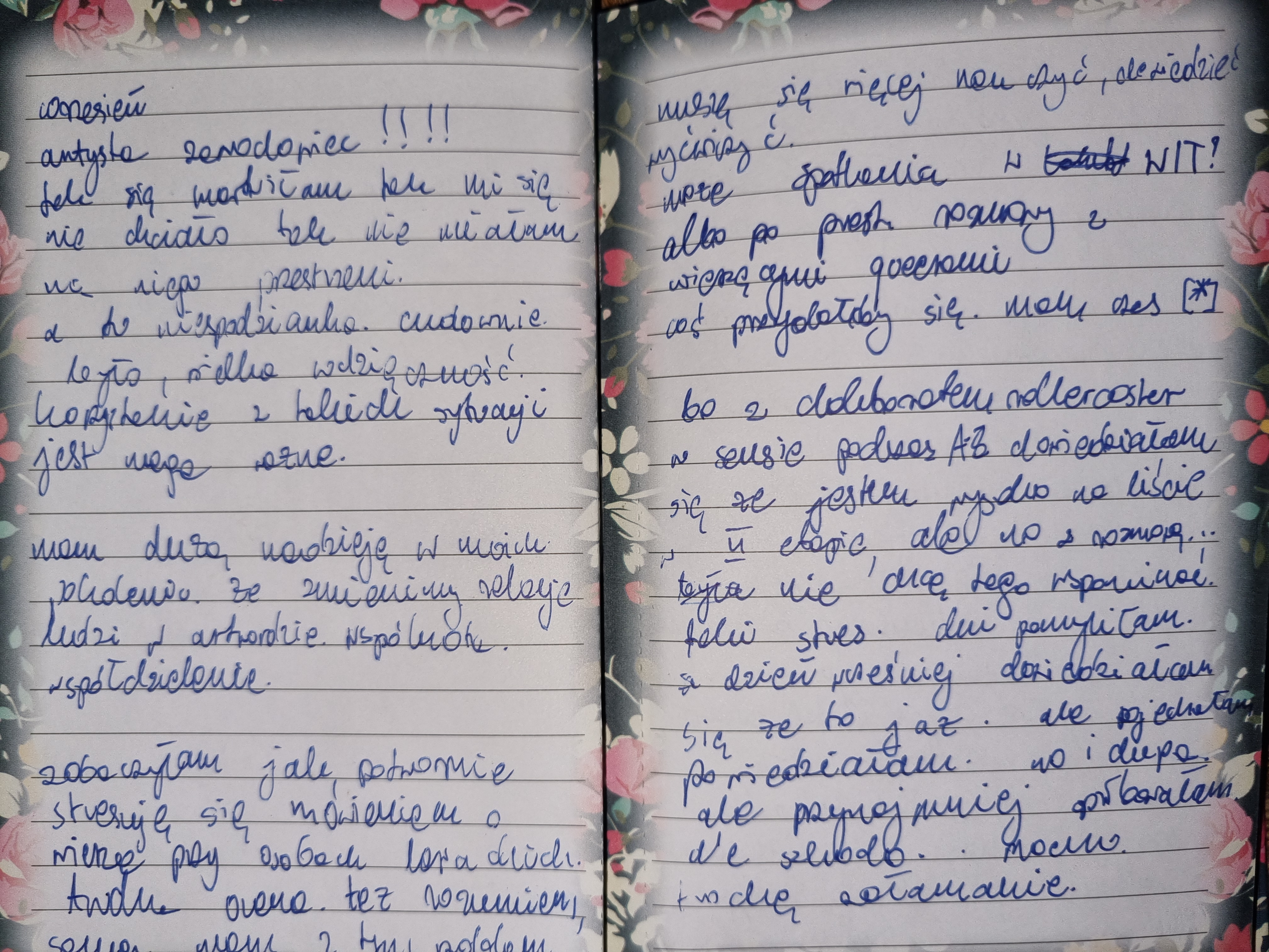Over the past few months, I have had some critical conversations with artists, received incredible support and developed a real sense of community. I believe in our generation’s focus on collectivity rather than competition. Although I wasn’t accepted into doctoral school this year, I am not giving up and will try again next year. In the meantime, I have begun studying at Maria Grzegorzewska University, aiming to acquire knowledge in art therapy that will enable me to support others through the therapeutic power of art.