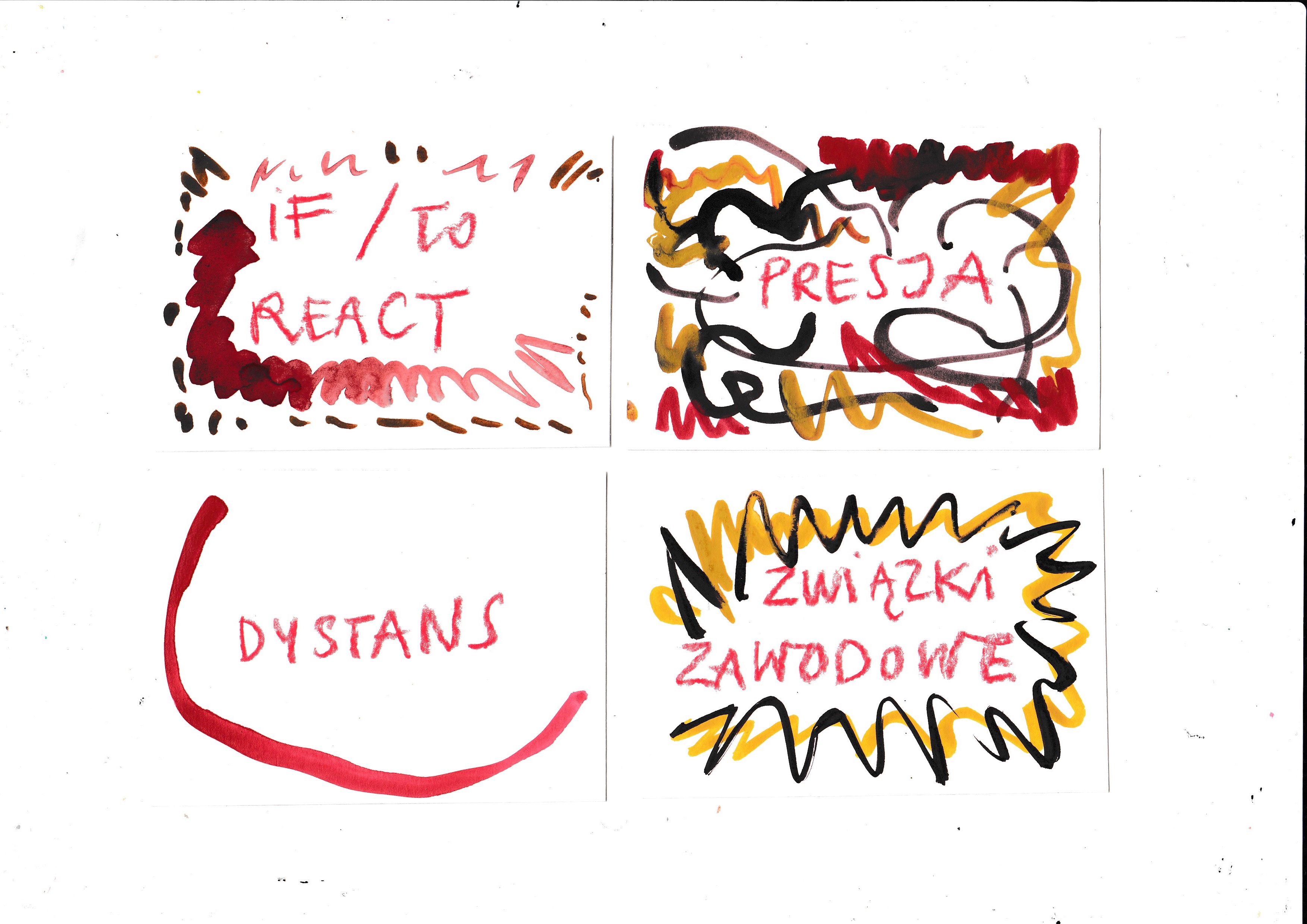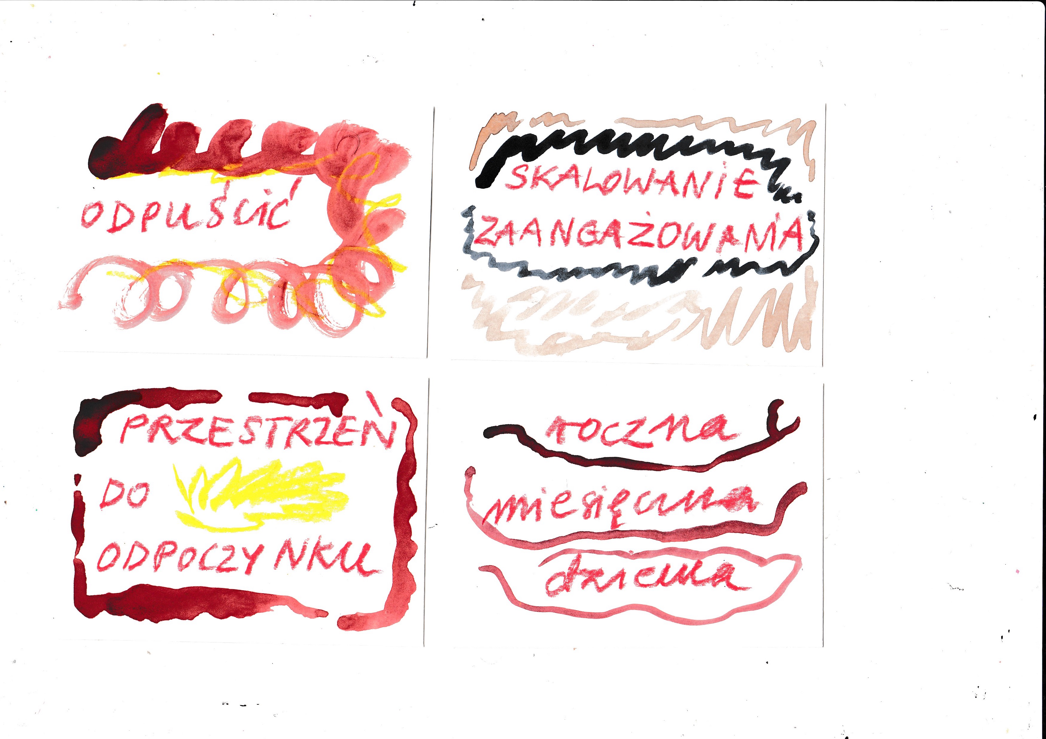 Thanks to the meetings I had with Ola and Sviatlana, I managed to create a roadmap of my activities. For some time, such a map had occupied my mind, yet more as an undefined knot of intertwined threads. By voicing my thoughts and giving them visual and textual form, I was able to truly ‘see’ what I devoted my time to daily. We examined my commitments and asked: what brings me pleasure and/or meaning? What is the source of my livelihood? What can be classified into neither category?